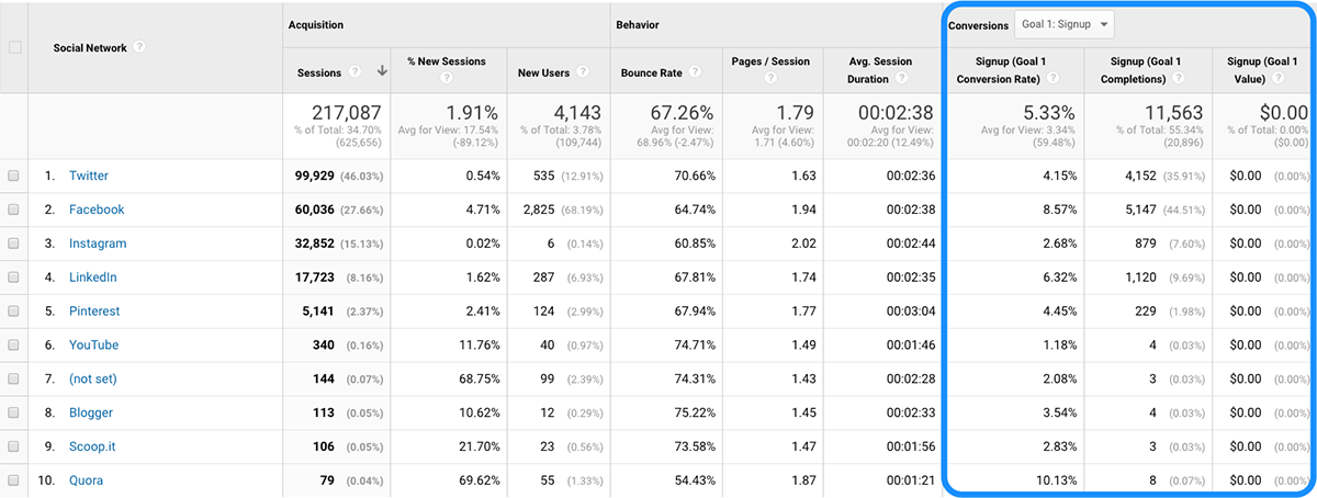 (Our report is showing $0 as we have been using another tool, Looker, instead of Google Analytics, to track revenue from social.)