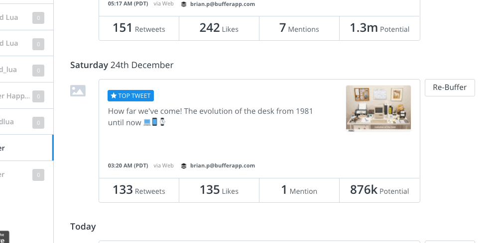 Step 3: Pick a post from a few weeks back and hit “Re-Buffer."